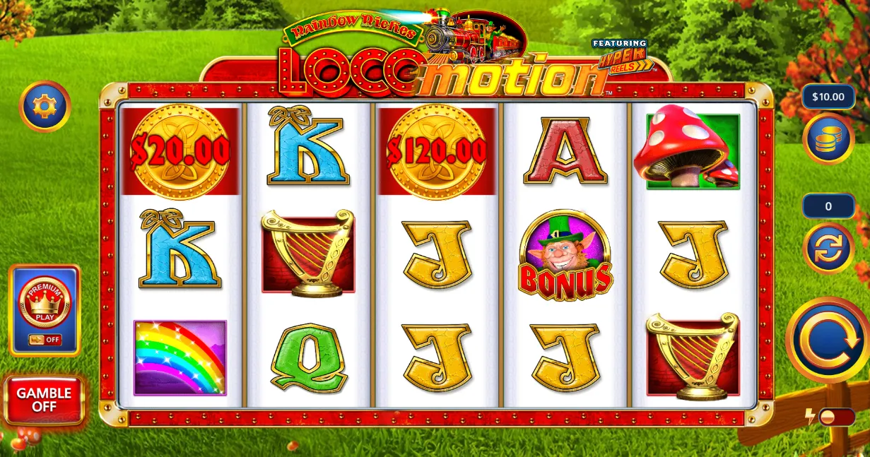 | Bonus Feature | Free Spins, LOCOmotion Bonus with Hyper Reels, Premium Play, Bonus Wheel, Gamble Feature |